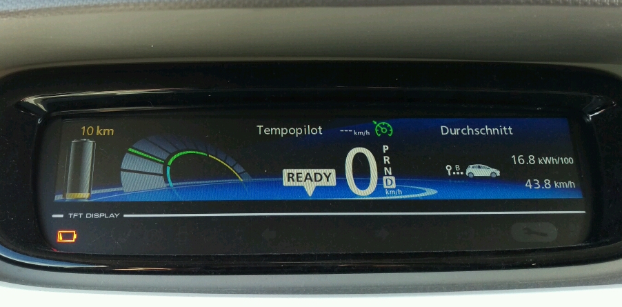 Also 78km. (Der Renault ZOE schafft leider nur 140km/h.) Wenn ich diese Geschwindigkeit zu ca. 80% auf der Autobahn fahren kann, dann sieht der Akku zu Hause so aus.