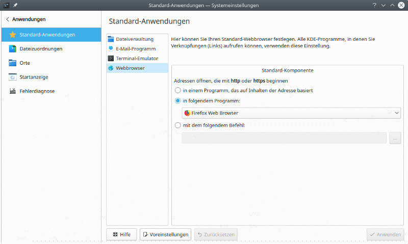 2. Persönliche Informationen --> Anwendungen --> Standard-Anwendungen --> Webbrowser.